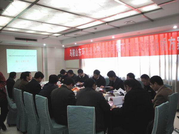 我部首先結合老橋的施工圖紙和設計部門的設計方案,詳細介紹了此次老橋拆除的施工及交通安全組織方案,然后又以幻燈片的形式圖文并茂加以描述。此老橋為6跨連續箱梁結構,擴大基礎,拆除時要保證半幅雙向通車,給施工及交通安全方面帶來了難度。與會專家及地方交通、交警、安監等部門針對我部提出的方案進行了全方位的評述,提出了意見及建議。最后與會專家一致認為我部提出的半幅封閉施工、半幅雙向通行、切割加破除的方案可行,完善后可用于現場施工。