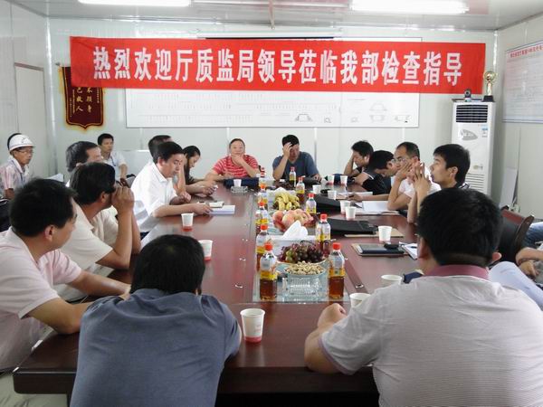 劉軍首先主持召開質量安全檢查布置會議,簡要的介紹本次質量安全檢查的內容和分工。項目經理王遠勝向檢查組一行就我部施工進度、質量、安全、環保、內業管理和目前施工存在的困難進行專門匯報。