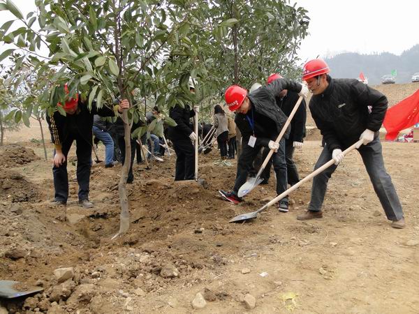 10日上午,項目黨支部書記邵建新、總工吳昊參加指揮部2011年在霧渡河互通的植樹造林活動,接力2010年植樹活動,再次種下三顆樹苗。11日,項目部購進具有觀賞性、成活率較高的紅葉石欄幼苗50株,環保部組織全體人員一人一顆在路基工區k62+600處高邊坡段種植。盡管地形陡峭、取水極不方便,大伙兒積極克服困難,分工合作,運樹苗、挖坑、種樹、運水、澆水,有序進行,經過2小時努力,順利種下全部樹苗,為綠化宜巴、共建綠色家園貢獻力量。