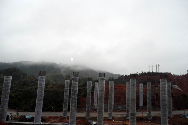 大廣B1標盤石分離立交橋墩柱澆筑全部完成 發布時間:2011年03月25日 來源:大廣B1標 發布人: 作者:蔣詩軍 瀏覽:3644次 3月19日,大廣B1標盤石分離立交橋施工區域雨霧交織,但施工現場卻是熱火朝天。隨著3#-4、3#-5橋墩立柱的澆筑完畢,大廣B1標盤石分離立交橋墩柱澆筑任務全部完成。 盤石分離立交橋橫跨省道龍小線,并且2#、3#墩又臨近道路,施工難度較大,但在項目部科學合理的安排調度下,墩柱施工有序開展,并順利完成。