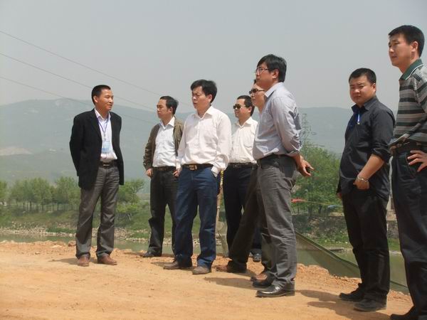 何局長首先來到我部北山河大橋施工現(xiàn)場,觀看主橋11#墩部位插板樁完成后的主墩承臺(tái)開挖情況及引橋樁基的施工情況。在聽完項(xiàng)目經(jīng)理冷峰對(duì)當(dāng)前大橋施工的系統(tǒng)介紹后,何局長對(duì)我部大橋施工的質(zhì)量控制及安全管理提出了具體要求。