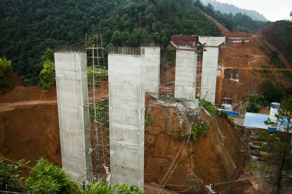 薄壁墩澆筑搶出來(lái)了,現(xiàn)在他們的重點(diǎn)又轉(zhuǎn)入到讓他們夜不能寐,茶飯無(wú)味,而進(jìn)度一直滯后的合江口四橋的下部構(gòu)造施工中。