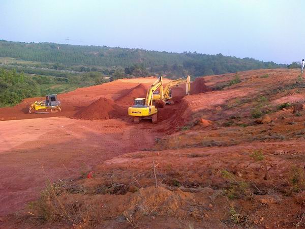 我部施工標段全長28公里,項目部將在永豐和吉水兩縣分別設立一座水穩拌合站及一座瀝青拌和站。按照業主要求,8月份完成水穩拌合站架設,10月份完成瀝青拌合站架設。項目部已經定出倒排工期計劃表。目前在永豐縣的“一白一黑”兩站已經確定,水穩拌和站已具備架設及備料條件。吉水縣我標段所處位置多為山地,且大部分為公益林,經過慎重選擇后,選定了一塊約50畝的山林地作為兩站場地。但此處土方量較大,場地整平土方量經測算約8萬方。項目部將充分利用晴好天氣,加班加點,計劃10個工作日完成場地整平。