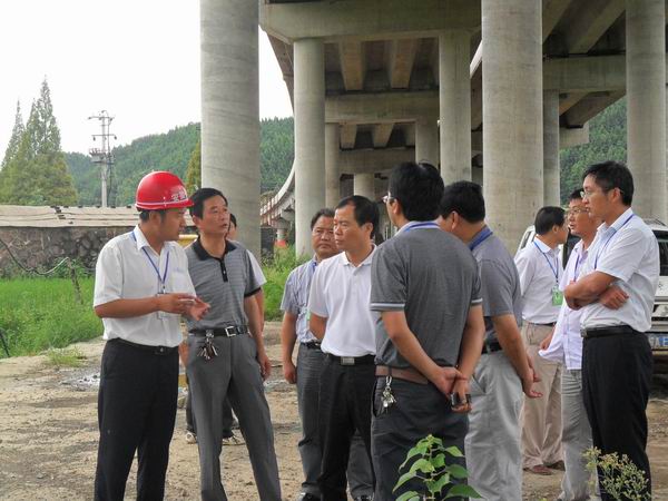 蘇處長一行分別查看了我標(biāo)段內(nèi)的金字牌分離式立交橋跨皖贛鐵路橋梁工程和四工區(qū)紅砂巖路塹挖方段兩個重點(diǎn)難點(diǎn)工程。檢查中蘇處長對我標(biāo)段的施工進(jìn)度和文明施工給予了充分肯定,并要求我部做好紅砂巖棄方處置工作,進(jìn)一步加快跨皖贛鐵路橋梁工程施工進(jìn)度,同時要求項(xiàng)目辦做好與南京地鐵公司的協(xié)調(diào)工作。我部項(xiàng)目經(jīng)理黃華表示將圍繞既定的施工計劃任務(wù)進(jìn)一步增強(qiáng)責(zé)任意識,加大跨皖贛鐵路橋梁工程的各項(xiàng)協(xié)調(diào)工作,加強(qiáng)管理,精心組織,堅(jiān)定信心,確保剩余工程按項(xiàng)目辦制定的節(jié)點(diǎn)工期計劃如期完成。