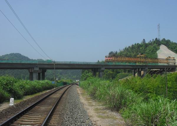 黃祁08標上跨皖贛鐵路橋箱梁安裝完成 發布時間:2012年05月11日 來源:黃祁08標 發布人: 作者:奚維峰 瀏覽:3468次 2012年5月11日早上,伴隨著隆隆的鞭炮聲,黃祁08標上跨皖贛鐵路橋的最后一片40米箱梁隨著架橋機緩緩落下,標志著我標段金字牌鐵路橋主體工程的完成。