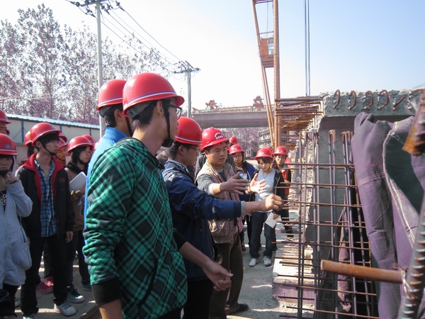 傅總首先對(duì)師生們的到來(lái)表示歡迎,并簡(jiǎn)要介紹了該項(xiàng)目的相關(guān)情況。隨后,該項(xiàng)目熊祖發(fā)為參觀學(xué)生上了一堂精彩的理論課,熊祖發(fā)對(duì)照施工進(jìn)度圖向同學(xué)們?cè)敿?xì)介紹了項(xiàng)目施工流程、難點(diǎn)、重點(diǎn)以及工程造價(jià)組成。為加深印象,熊祖發(fā)帶領(lǐng)師生實(shí)地參觀了主橋、鋼桁架梁、預(yù)制梁場(chǎng)等施工現(xiàn)場(chǎng)。每到一處,同學(xué)們都被精致的工藝所折服,紛紛稱(chēng)贊安徽路橋不愧為一家大企業(yè),并當(dāng)場(chǎng)表達(dá)了加盟路橋公司的愿望。