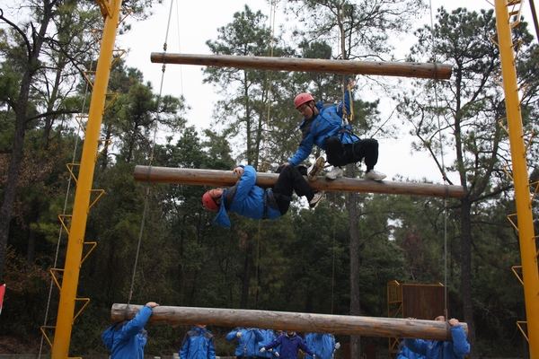 在培訓(xùn)基地,學(xué)員被隨機分為三組,通過民主討論選出各自的隊長、隊名、隊歌和口號。在隨后的拓展培訓(xùn)中,三組隊員依靠團結(jié)協(xié)作、頑強拼搏、毫不畏懼的精神順利完成了“背摔、斷橋、天梯、空中單杠、求生墻”等挑戰(zhàn)性項目,通過這些項目的挑戰(zhàn),經(jīng)過帶訓(xùn)老師針對性的啟發(fā)和指導(dǎo),使廣大學(xué)員加深了對團隊協(xié)作、互助互信的理解,達(dá)到了挑戰(zhàn)自我、熔煉團隊、提升溝通與合作的目的。