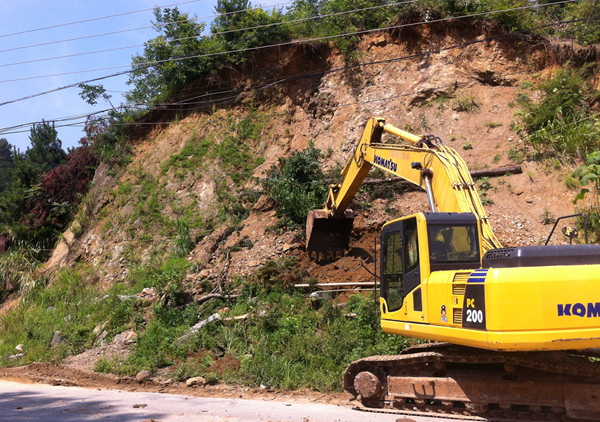 該項目部坐落在風景秀麗的國家5A級風景區天堂寨腳下。7月初,項目駐地建設已基本完成。當前,原地面清表,高山挖方等工作都在有序的進行,下一步將集中精力進行土方施工,努力克服山區和風景區的條件限制盡快籌建拌合站,計劃在本月底投入生產。